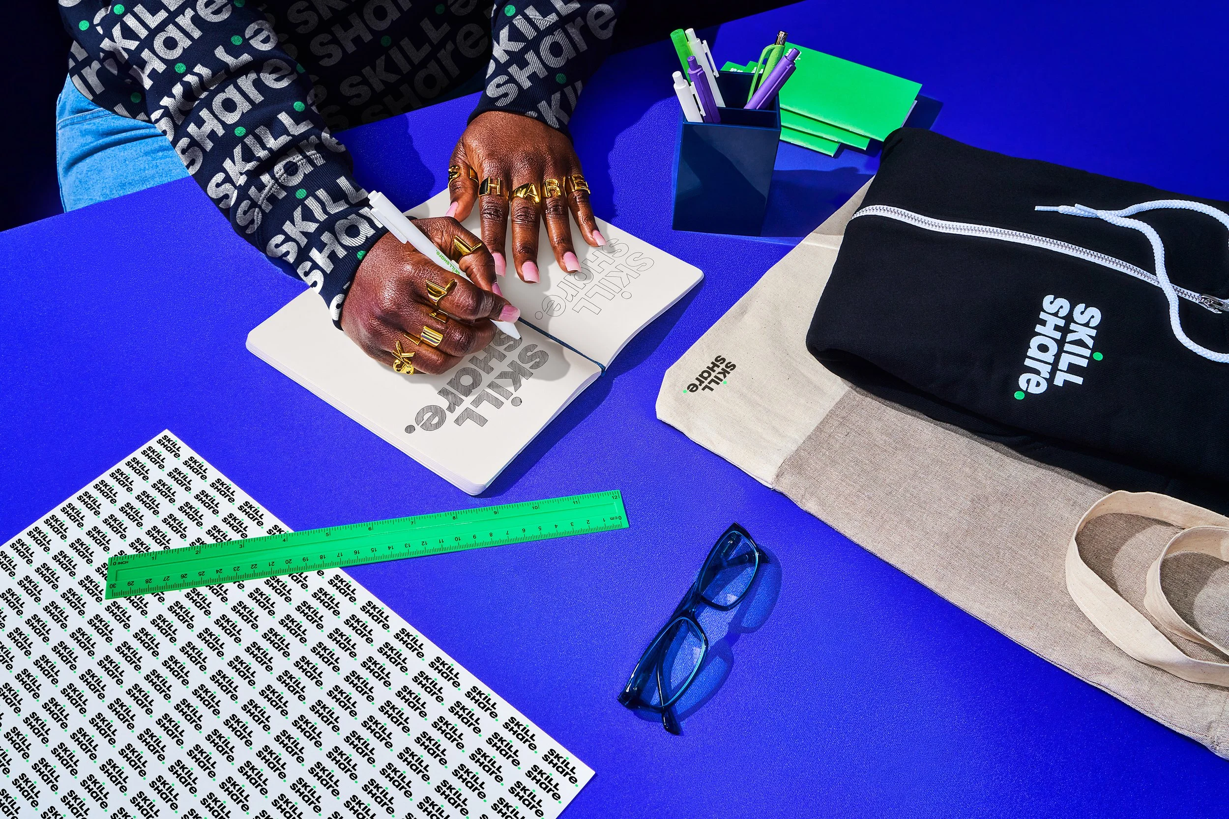 You can learn just about anything your creative heart desires on Skillshare—so our brand photo library needed to be as wide reaching as our topics. As a creative brand, that playfulness is ever-present in our photo style. Our art direction is vibrant, high contrast with striking shadows. Scenes are imperfect and dynamic—just like your creative journey.